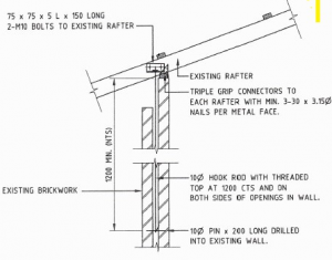 So the core issues can be not about holding the roof up, but hanging onto the roof in a high wind event. The Building Code of Australia requires the roof frame to be tied down to the house as defined in Australian Standard 1684.